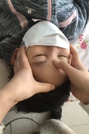 操作:媽媽兩拇指,用兩拇指指腹交替從兩眉正中推向前發際線,推100-200次,稱開天門,又稱推攢竹。