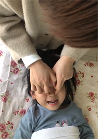 操作:媽媽用兩食指按揉30-50次,稱揉迎香。