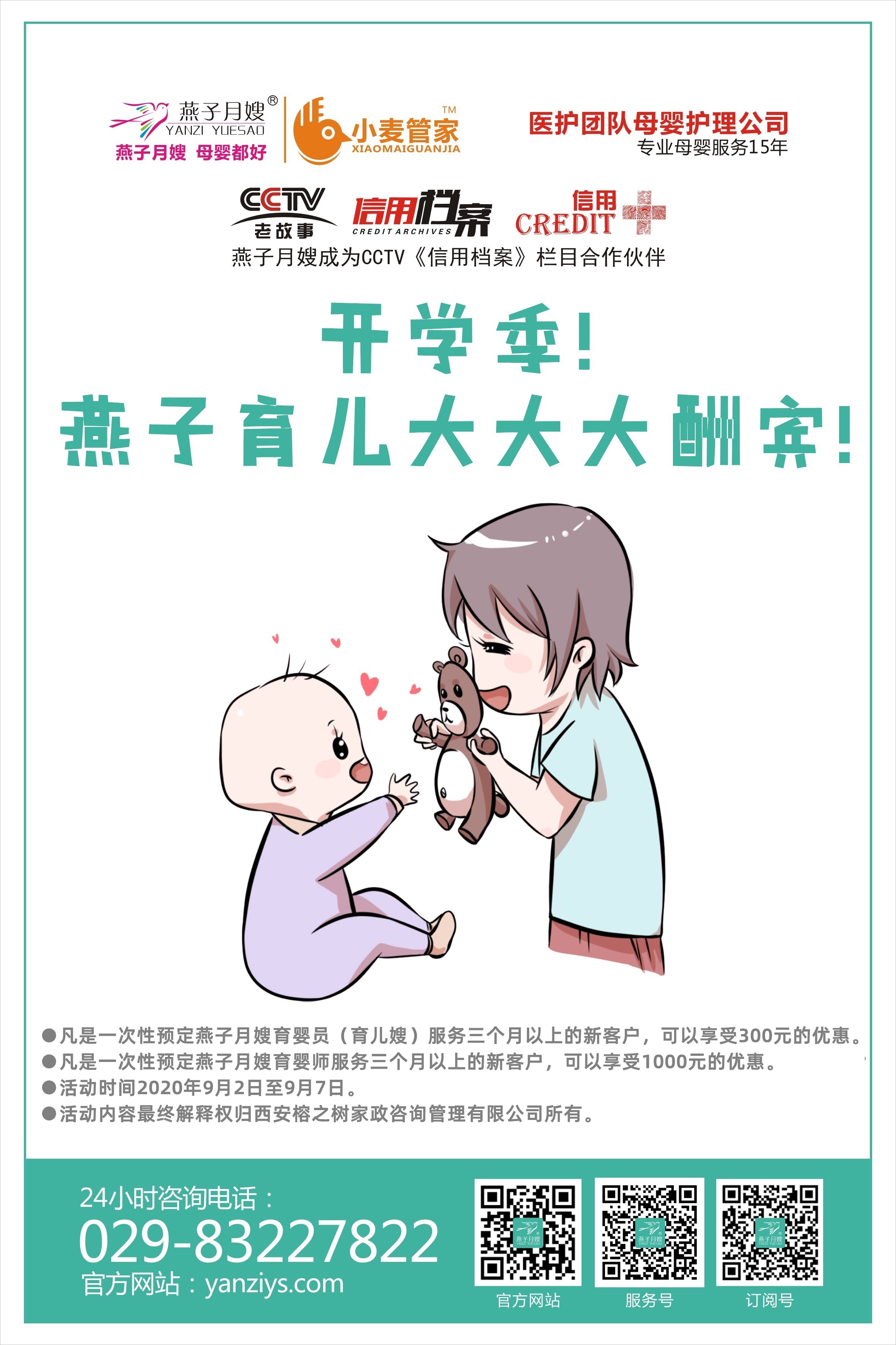 開學季!西安燕子月嫂育嬰服務大大大酬賓!