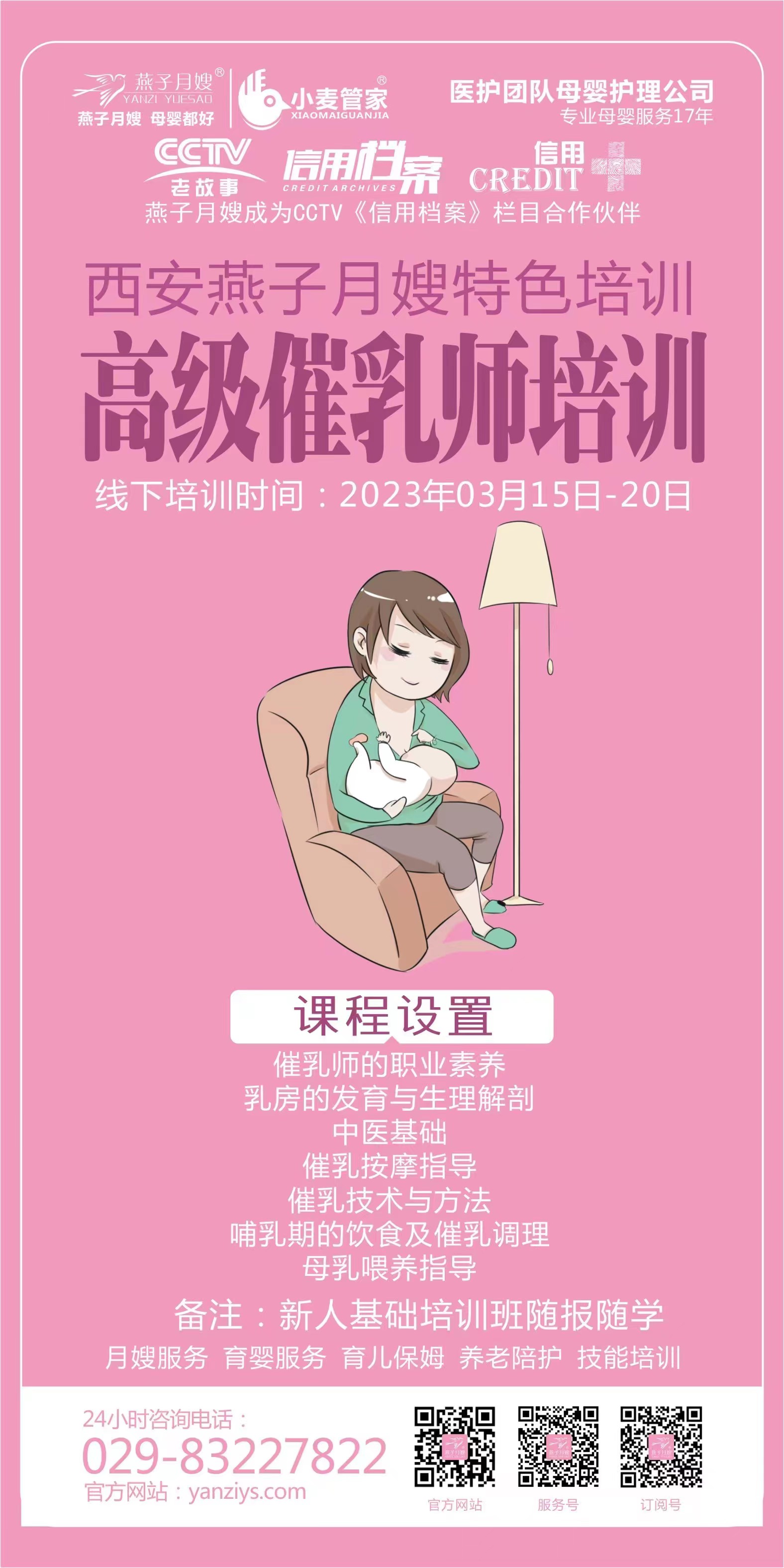 西安燕子月嫂“202302期高級催乳師特色培訓”即將開始