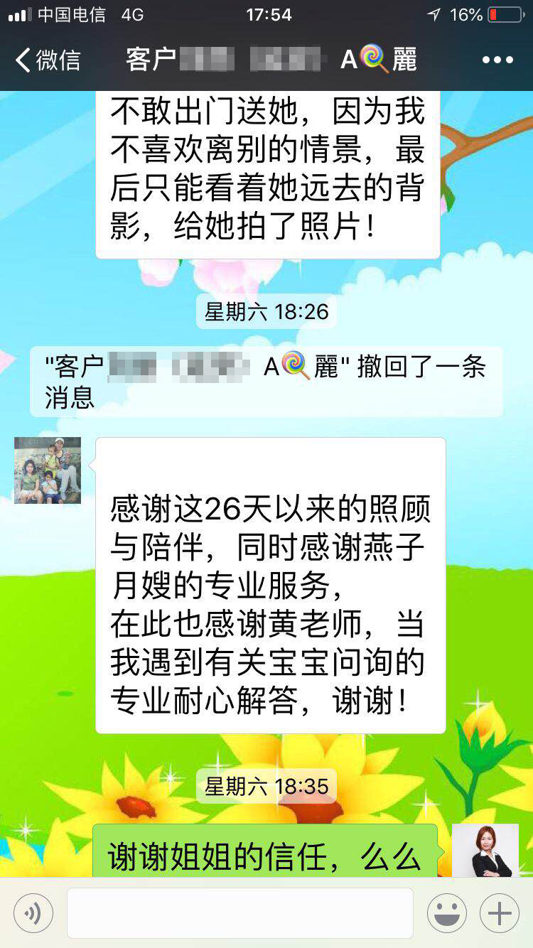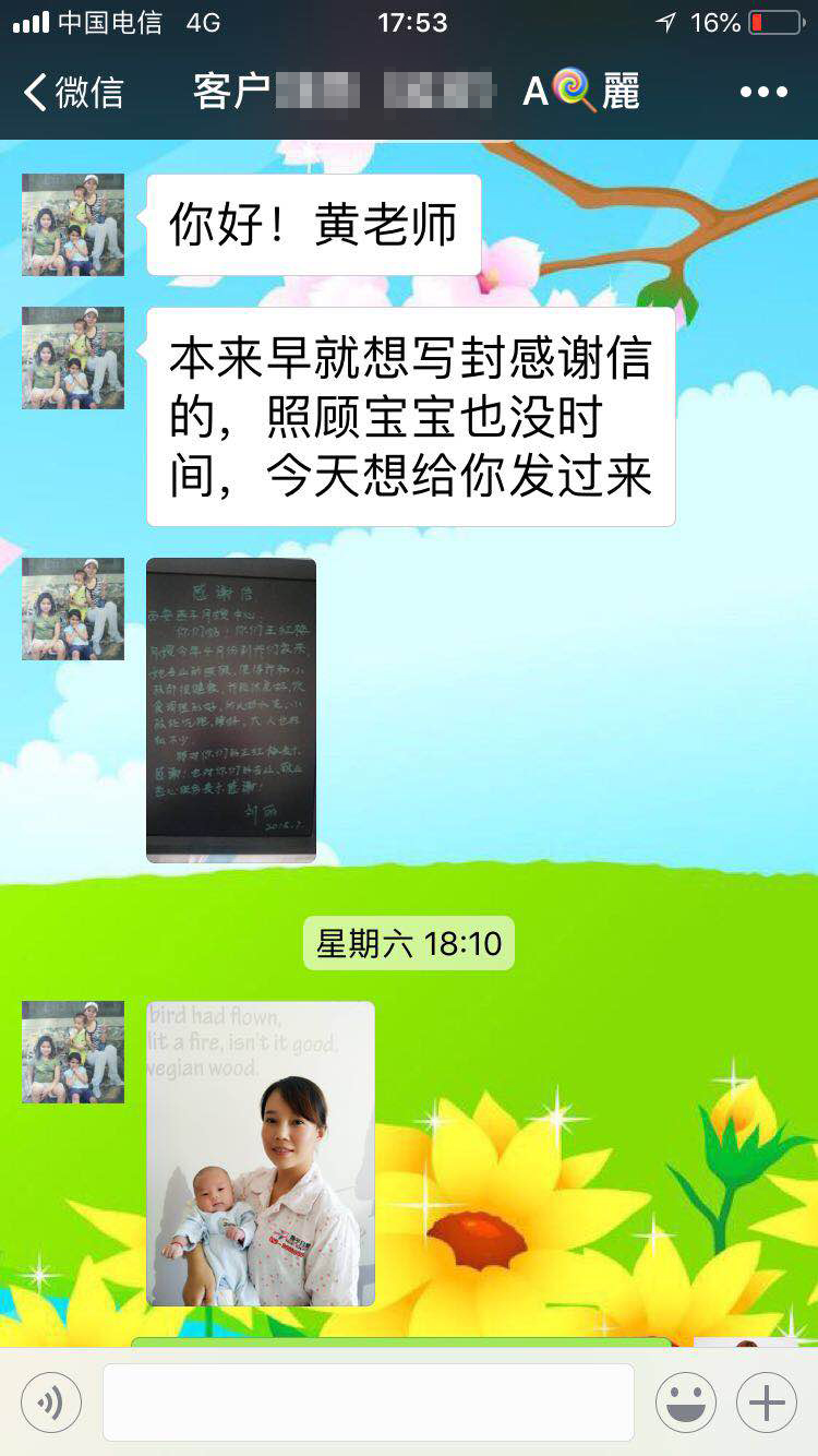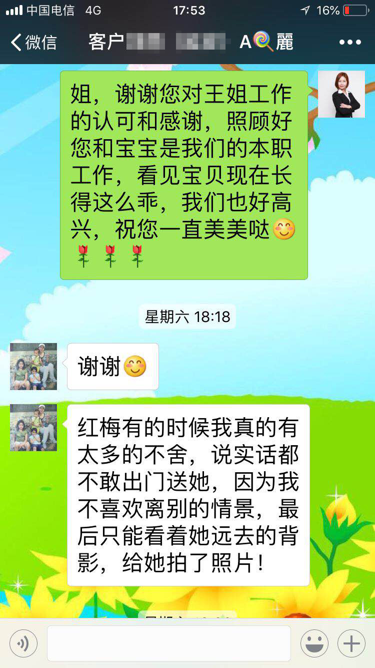 客戶給美女月嫂王紅梅的感謝信