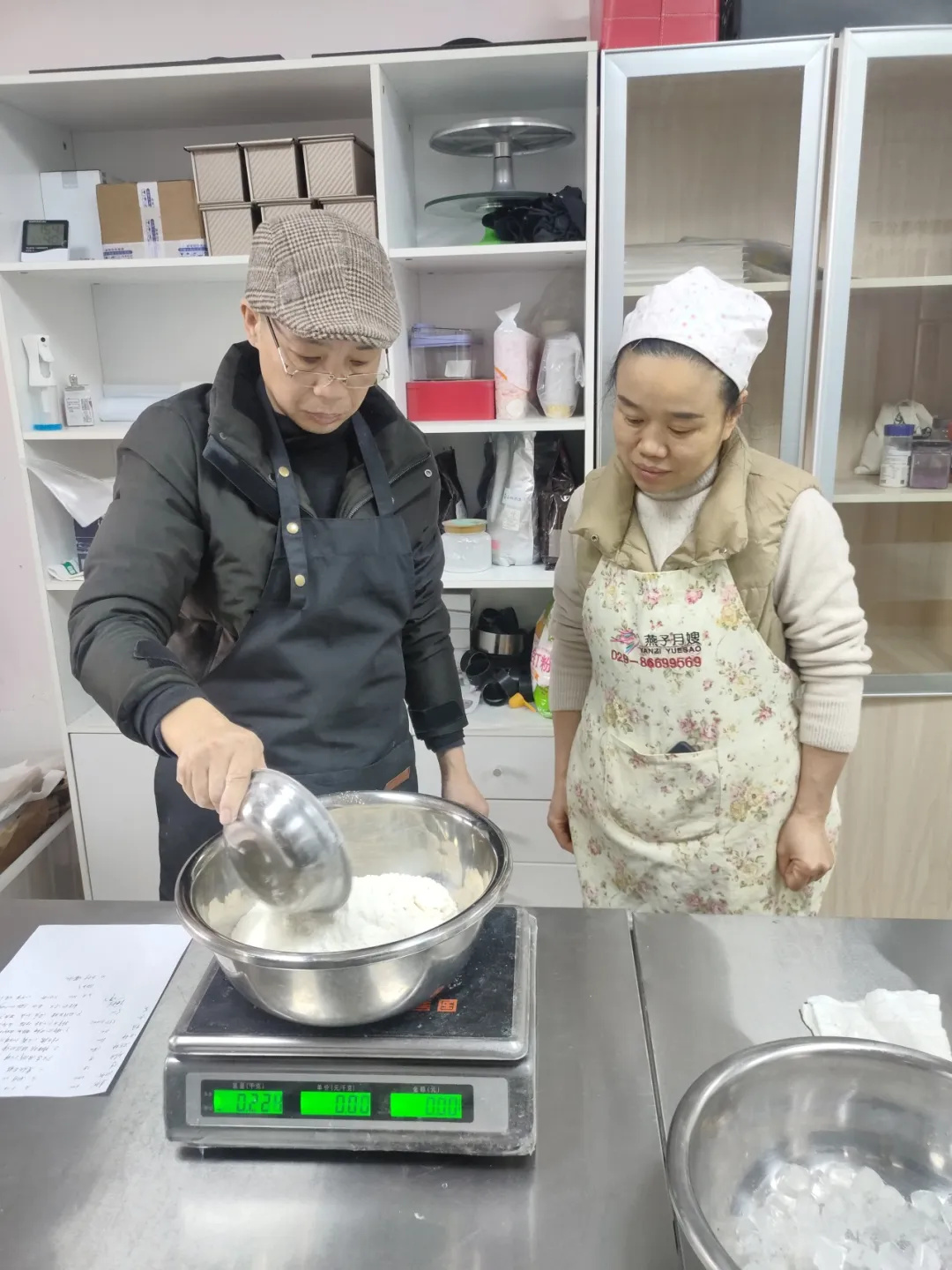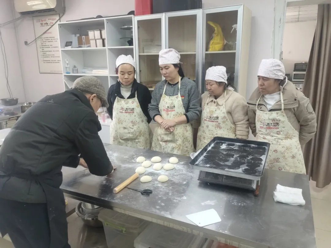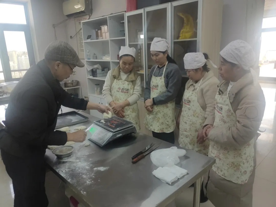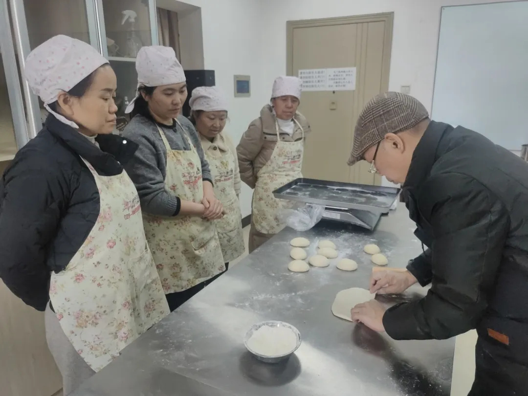 參與培訓的月嫂育嬰師們熱情高漲,紛紛動手實踐,在操作過程中積極向華老師請教。大家圍在操作臺前,認真地揉著面團,嘗試將學到的技巧運用到實際制作中。