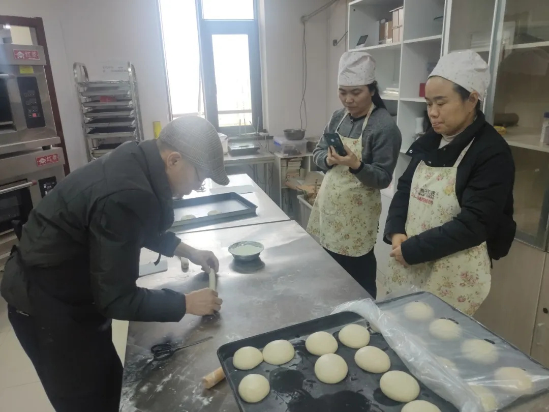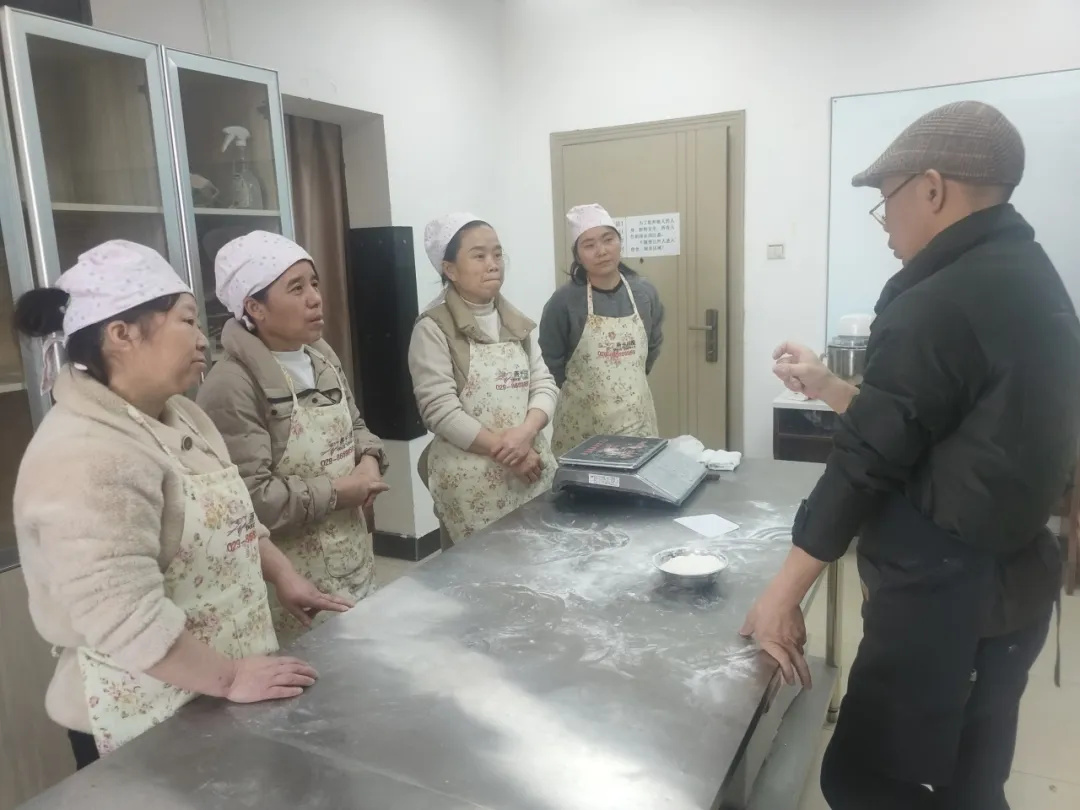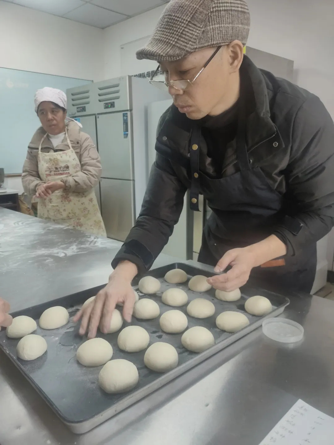 參與培訓的月嫂育嬰師們熱情高漲,紛紛動手實踐,在操作過程中積極向華老師請教。大家圍在操作臺前,認真地揉著面團,嘗試將學到的技巧運用到實際制作中。