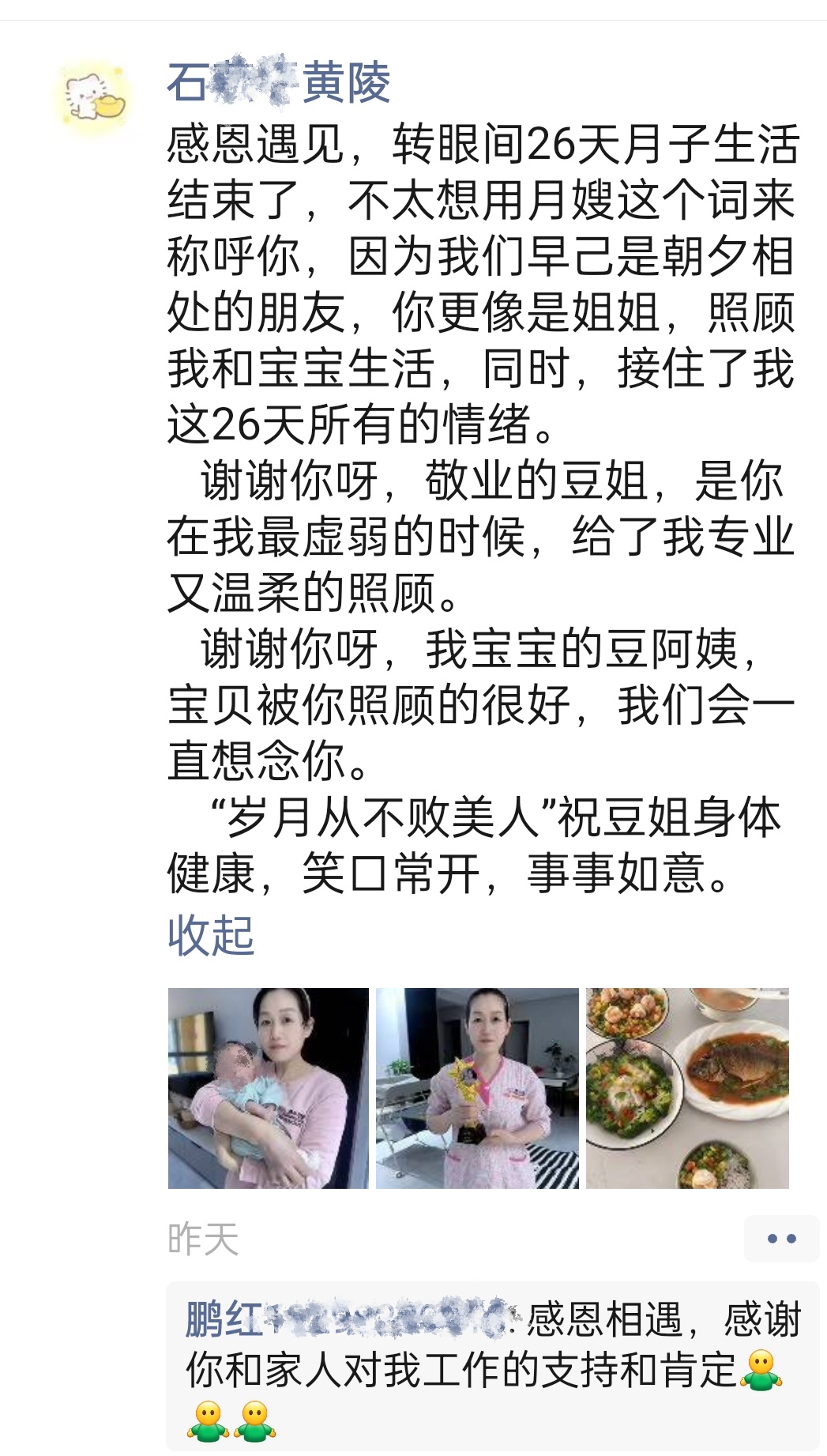 月子生活里的別樣親情:致我的月嫂豆鵬紅姐姐