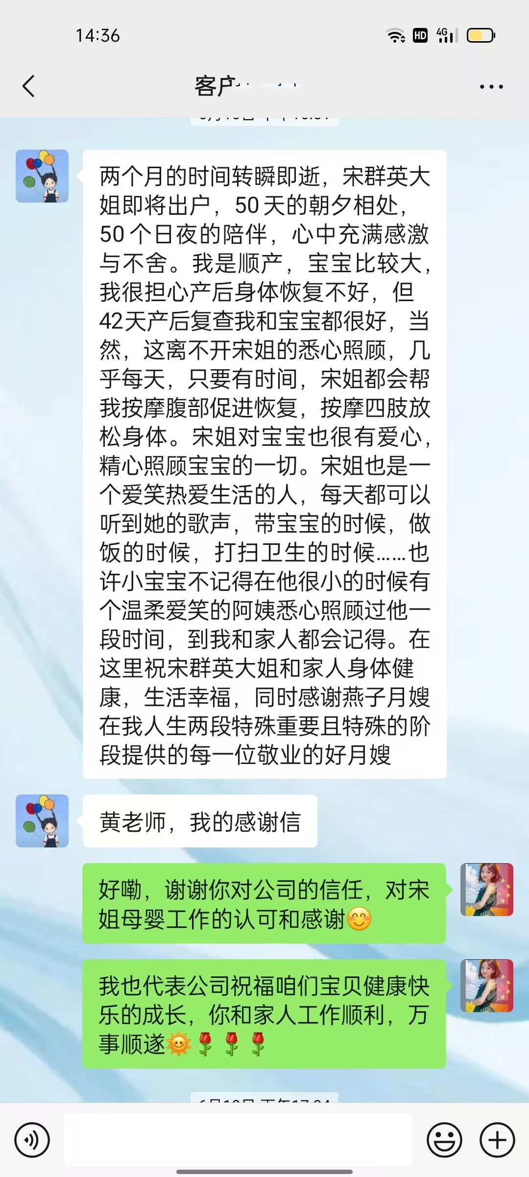 感謝#月嫂[超話]# 宋群英:50個日夜的陪伴,心中充滿不舍! 用愛呵護。用心 陪伴 致燕子#月嫂[超話]# 宋群英#西安月嫂# 兩個月的時間轉瞬即逝,#西安月嫂# 宋群英大姐即將出戶,50天的朝夕相處,50個日夜的陪伴,心中充滿感激與不舍。我是順產,寶寶比較大,我很擔心產后身體恢復不好,但42天產后復查我和寶寶都很好,當然,這離不開宋姐的悉心照顧,幾乎每天,只要有時間,宋姐都會幫我按摩腹部促進恢復,按摩四肢放松身體。宋姐對寶寶也很有愛心,精心照顧寶寶的一切。宋姐也是一個愛笑熱愛生活的人,每天都可以聽到她的歌聲,帶寶寶的時候,做飯的時候,打掃衛生的時候……也許小寶寶不記得在他很小的時候有個溫柔愛笑的阿姨悉心照顧過他一段時間,但我和家人都會記得。在這里祝宋群英大姐和家人身體健康,生活幸福,同時感謝燕子#月嫂[超話]# 在我人生兩段重要且特殊的階段提供的每一位敬業的好月嫂。