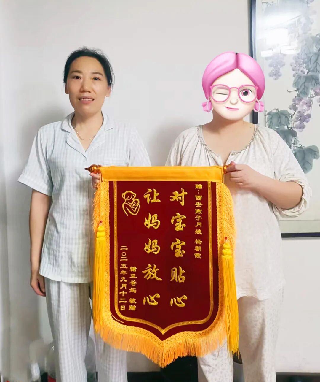 尊貴客戶及家人為燕子月嫂楊朝霞定制錦旗:“對寶寶貼心,讓媽媽放心”,并附一封感謝信,表示對我們服務的肯定!燕子月嫂全體員工感恩您一直以來的信任與支持,我們將秉承客戶至上、以人為本的服務宗旨,把優質的母嬰護理服務送入千家萬戶!
