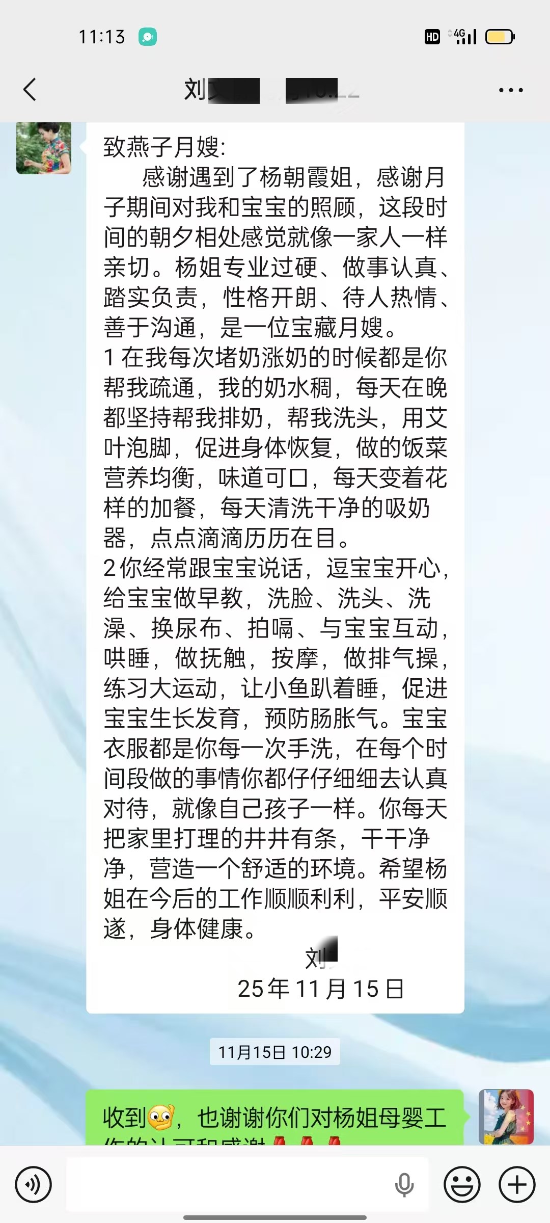 感謝遇到了我的“寶藏#月嫂# ”楊朝霞!