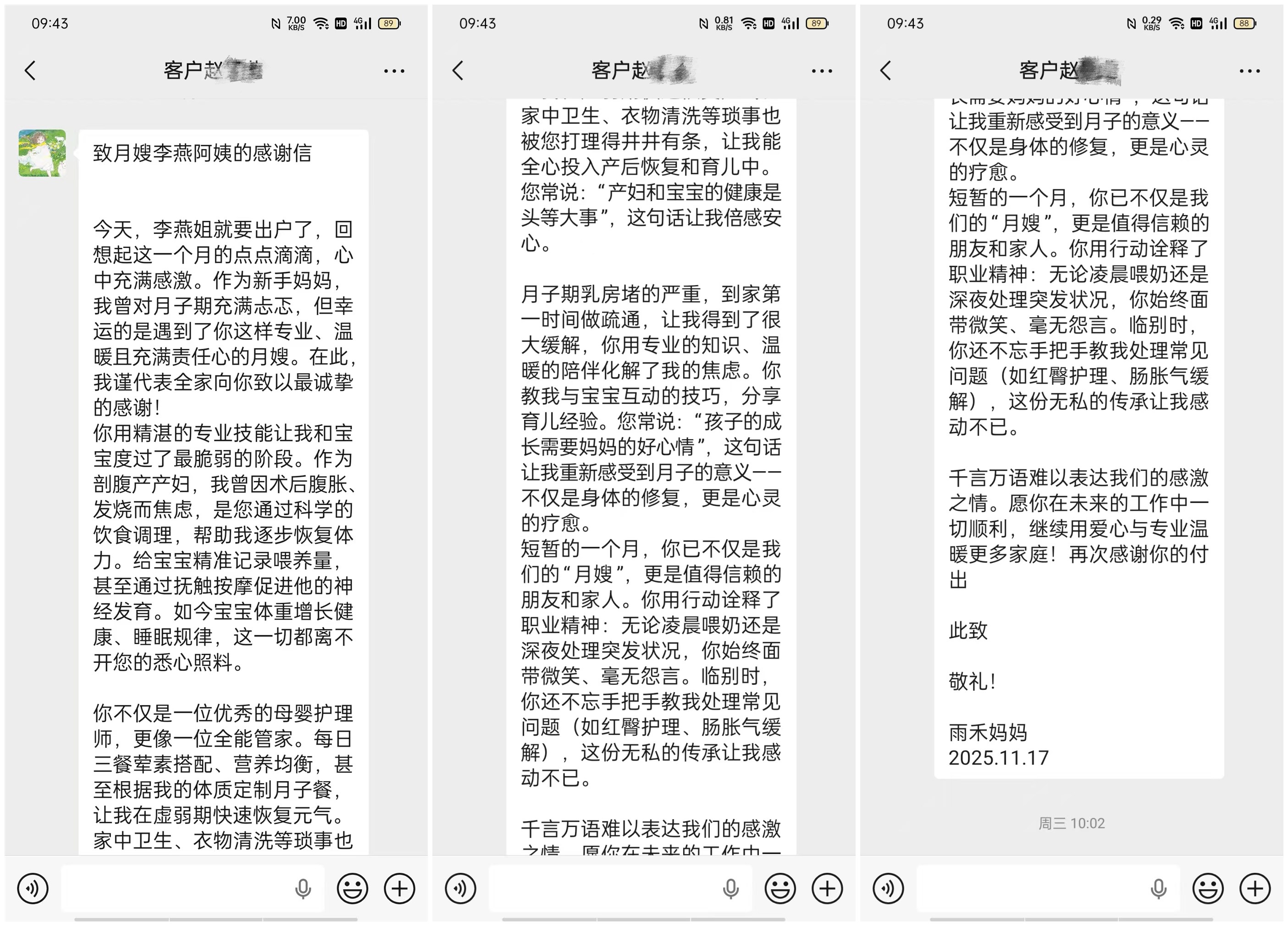 致#月嫂# 李燕 姐的感謝信: