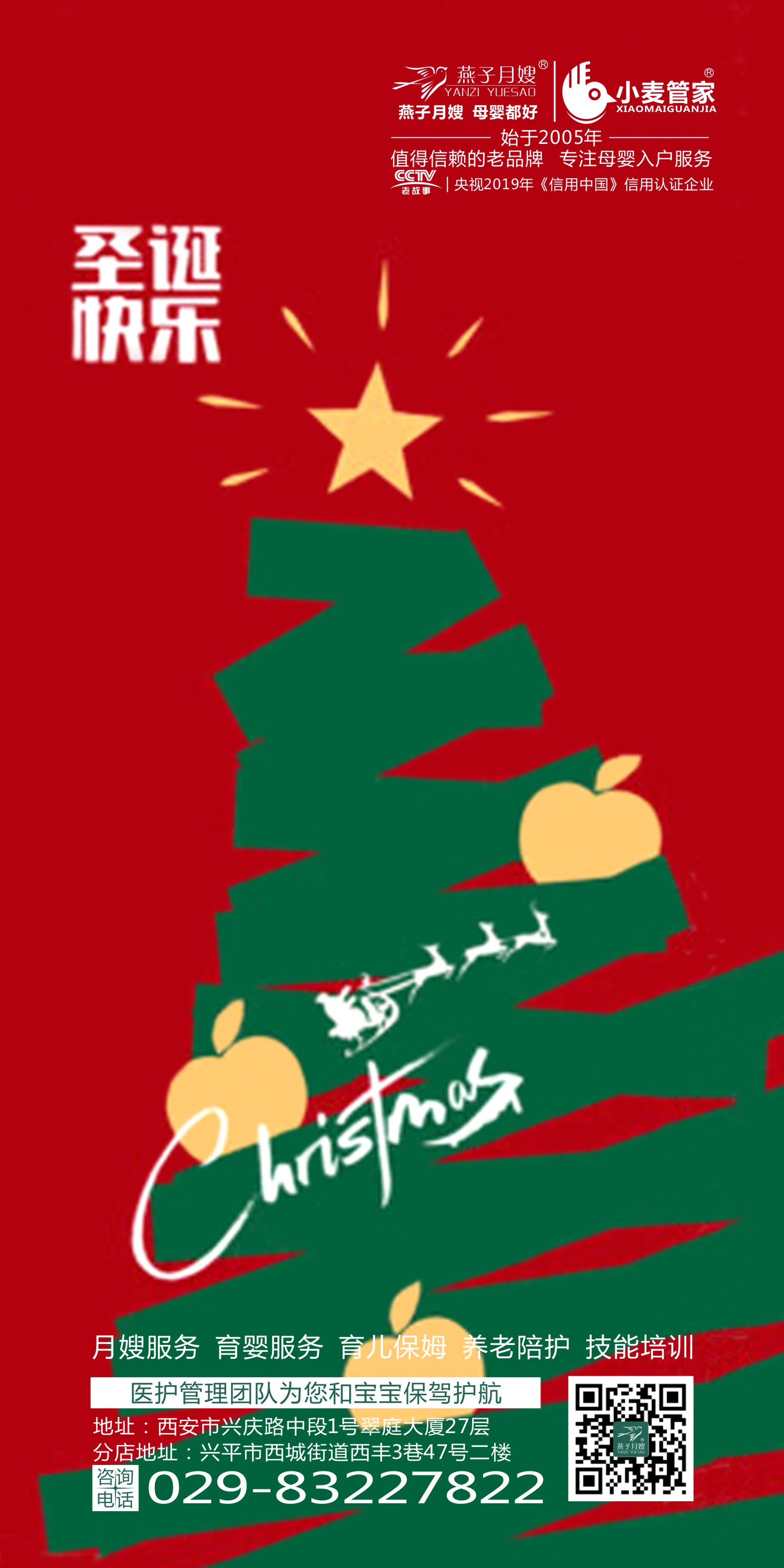 當鐘樓傳來熟悉的《平安夜》旋律,當古城墻下雪花輕輕飄落,這個圣誕節因為新生命的到來而意義非凡。西安燕子月嫂,在這個充滿祝福的時節,為您守護最珍貴的禮物——家的溫暖與新生的喜悅。