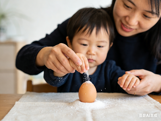 燕子金牌育嬰師悄悄透露了幾個立蛋小技巧,超實用!先輕輕搖晃雞蛋,讓蛋黃沉淀到下部,這樣雞蛋的重心就更低,立起來更穩。放雞蛋的時候,要慢慢地、輕輕地放下,同時微微調整角度,找到雞蛋表面那幾個能支撐它站穩的 “小山” 支點。過程中一定要穩住心態,手別抖,心要靜,深呼吸,慢慢來,越著急越不容易成功哦。要是實在立不起來,還有個小妙招,在桌面上撒一點點鹽或糖,增加摩擦力,等雞蛋立好后,再輕輕吹掉多余的鹽或糖 。