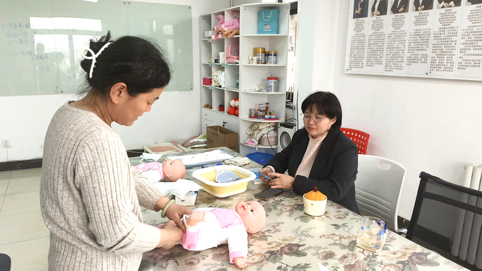 因為我們把復雜的專業知識拆解成了看得見、摸得著的動作。課堂上,一半時間講理論——新生兒為什么容易吐奶?產婦情緒波動怎么安撫?另一半時間全在動手練——硅膠娃娃模擬真實觸感,你反復練習洗澡、撫觸、包包被,導師站在身邊,一個動作一個動作糾正。小班授課的好處就在這兒:你不會被淹沒在人群里,每一個疑問都會被認真回答。