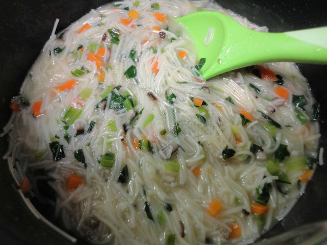食材:老母雞湯、香菇、紅蘿卜、青菜