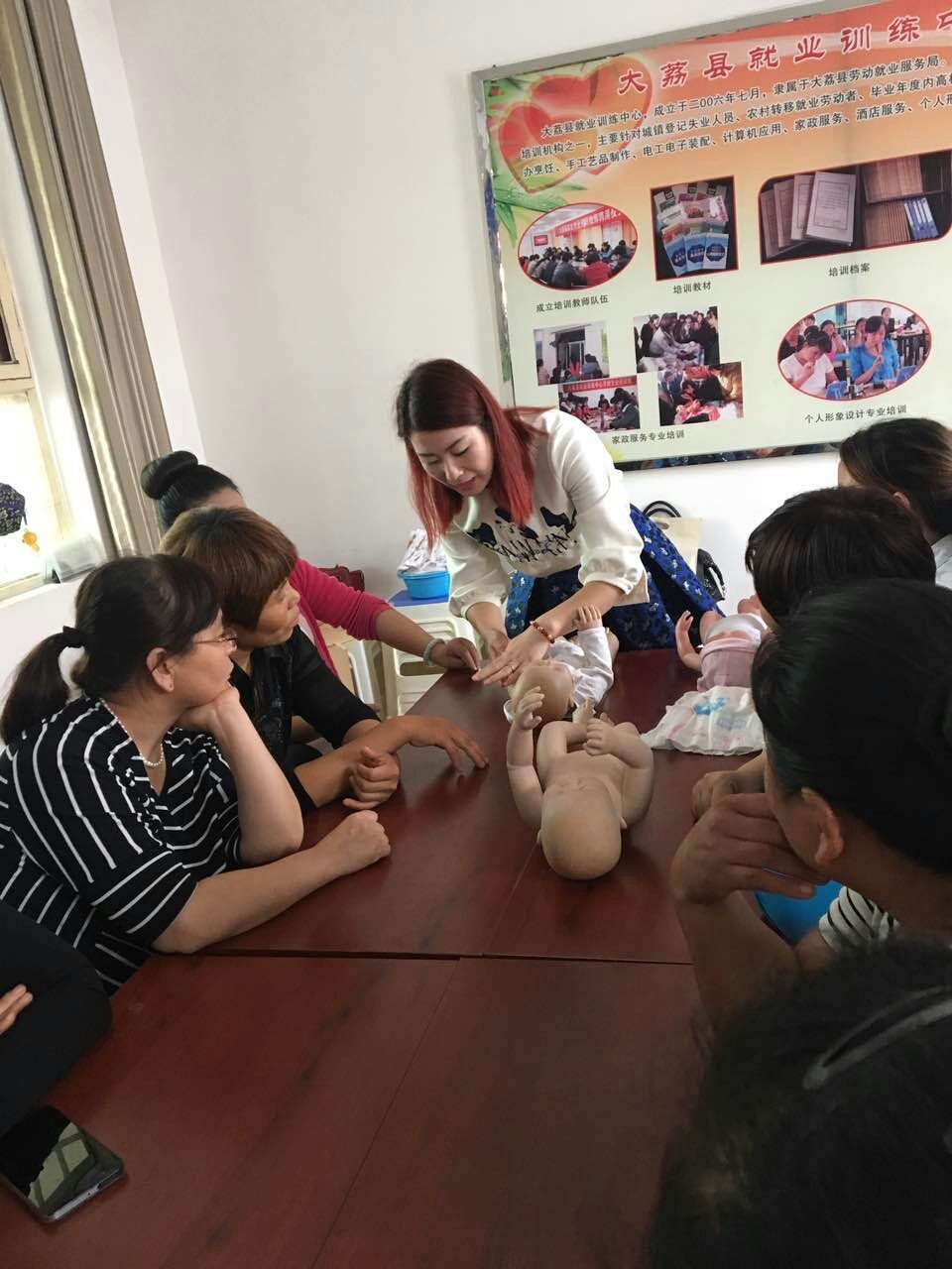2015-2017年,劉敏茹老師受公司委派,先后遠赴榆林佳縣、武功縣、延安市、藍田縣、興平市、渭南大荔等多地合作機構,參與當?shù)卣蚺嘤枡C構舉辦的母嬰護理培訓,為當?shù)貜V大阿姨、姐妹們帶去了專業(yè)的母嬰護理知識,拓寬了姐妹們的就業(yè)途徑。