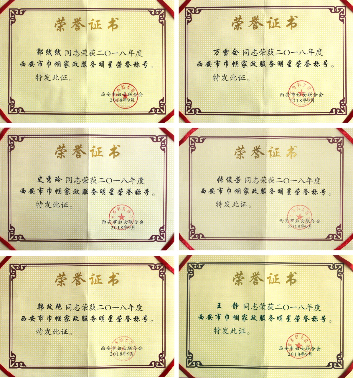 恭喜郭線線、萬雪會、史秀玲、張俊芳、王靜、韓改艷等六位明星月嫂獲得“西安市家政服務(wù)明星”稱號,希望她們在今后的工作繼續(xù)努力,也希望其他的月嫂、育兒嫂姐妹們向她們學(xué)習(xí)。