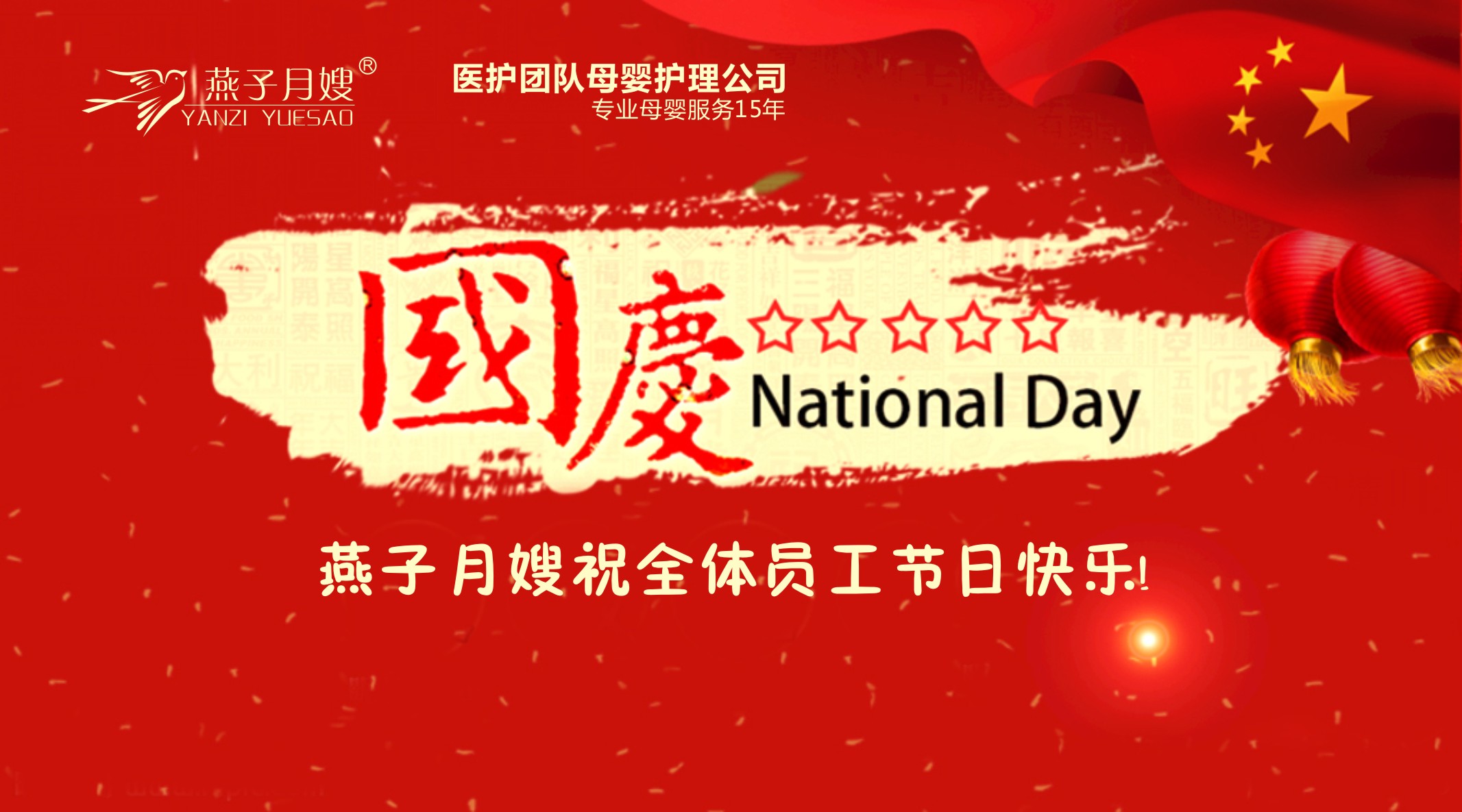 燕子月嫂公司全體員工祝偉大祖國生日快樂!