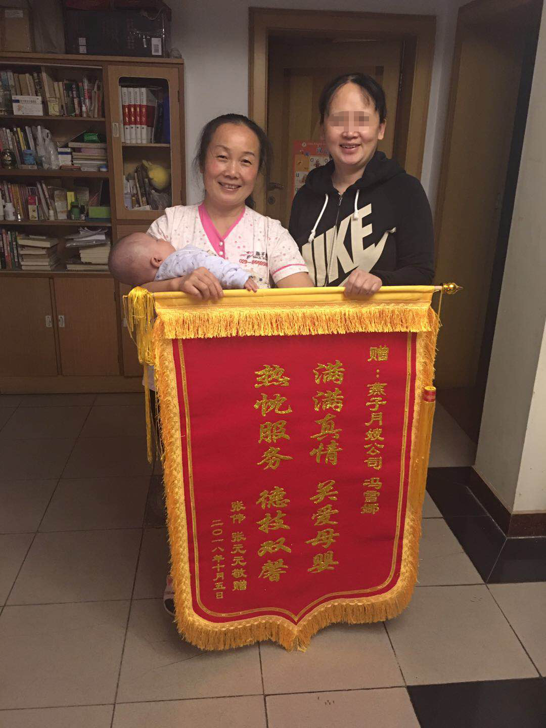 金牌月嫂馮雪娜的錦旗i及感謝信