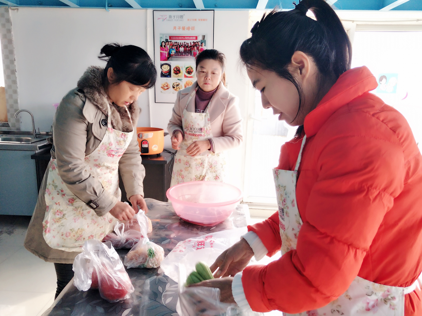 本期參加培訓的學員有9名,培訓老師是從業12年的金牌月嫂王亞娥老師,針對學員們普遍做菜比較單一的情況,王老師手把手認真的為學員們講述著每一道菜的材料準備、操作程序,炒或蒸的注意事項等,并一一讓學員們自己動手操作,課程持續近4小時。