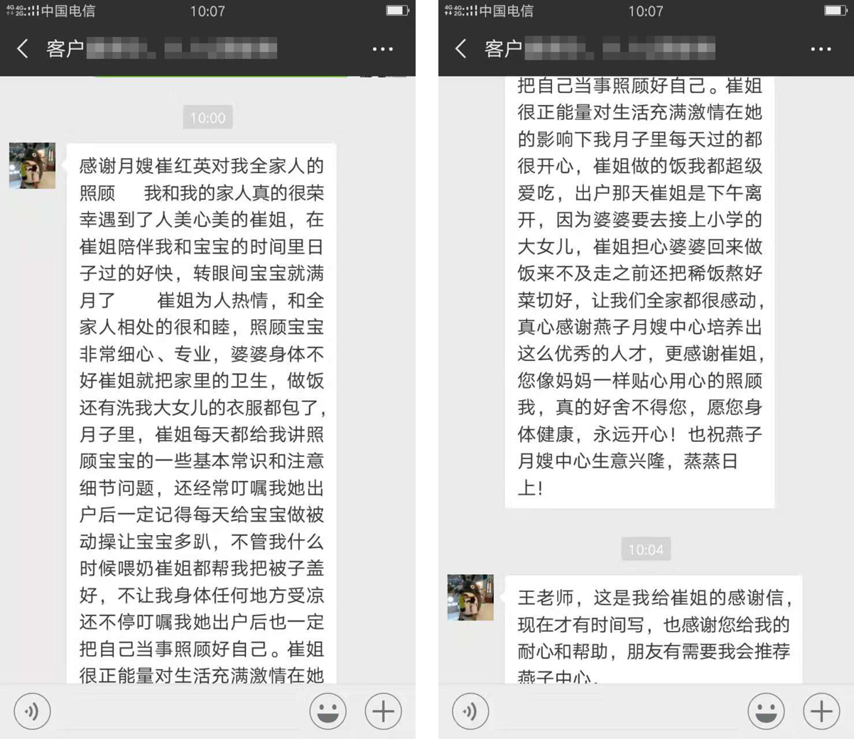 感謝月嫂崔紅英對我全家人的照顧