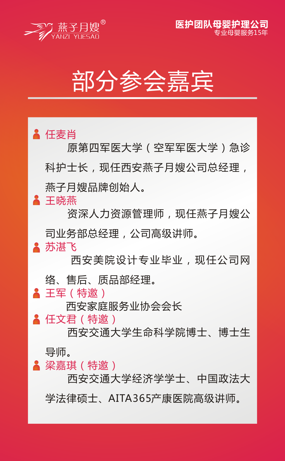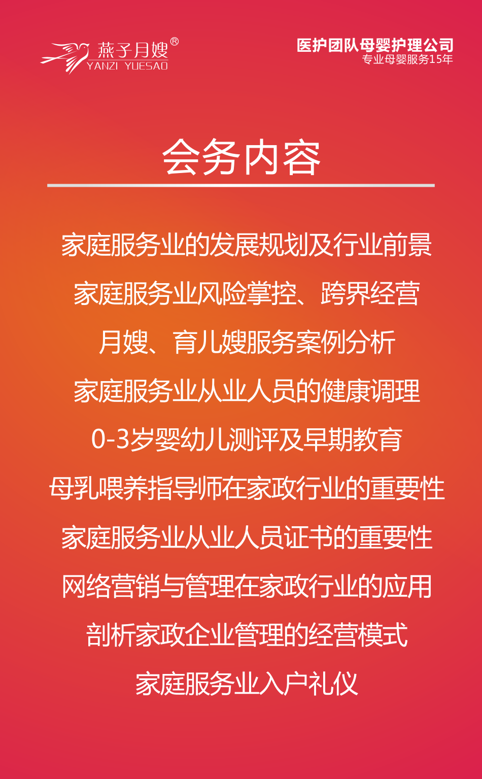 西安家庭服務業協會會員單位可有一個免費參會名額。燕子月嫂各分店店主免費參會(住宿自理)。