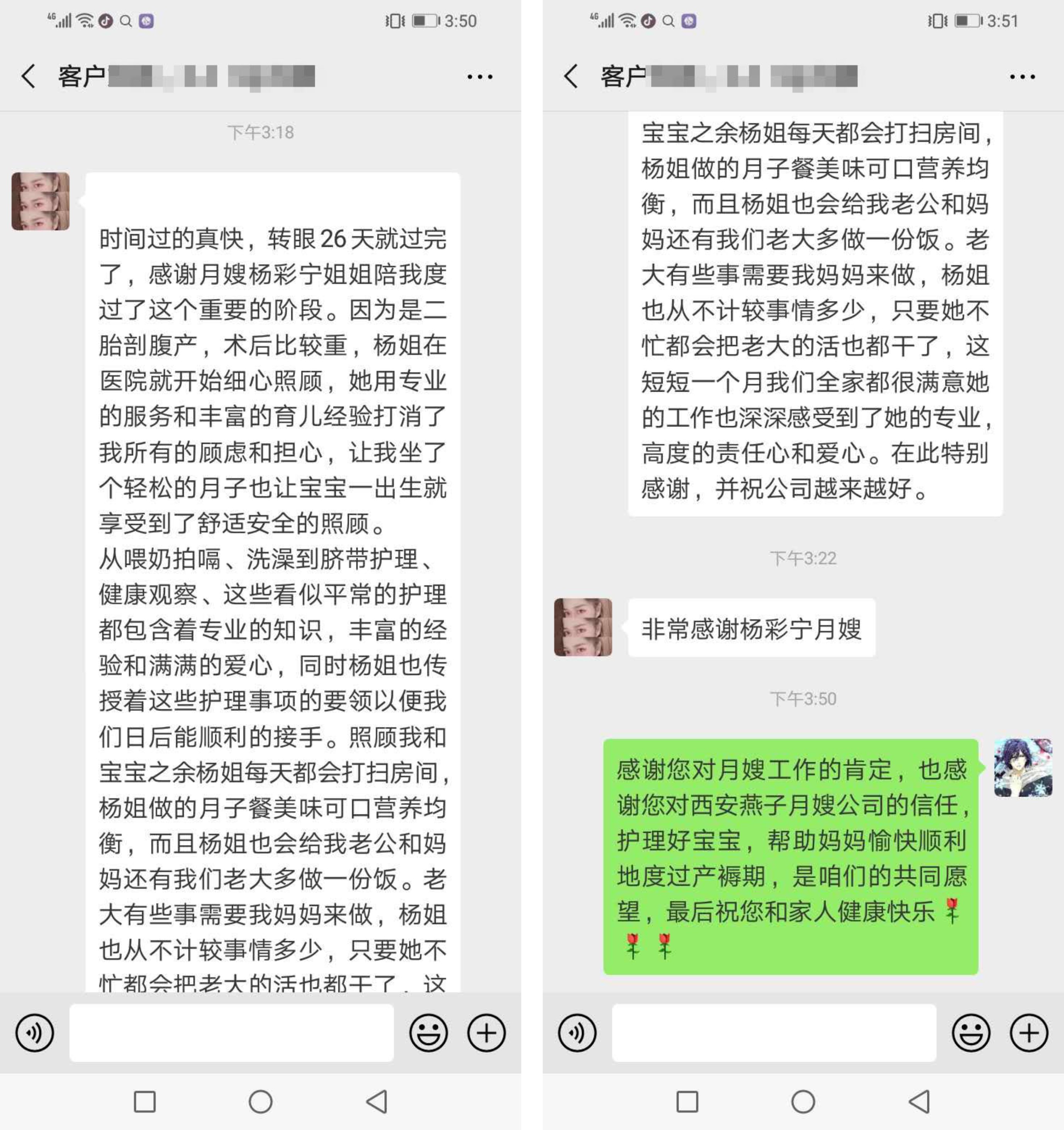 從喂奶拍嗝、洗澡到臍帶護理、健康觀察、這些看似平常的護理都包含著專業(yè)的知識,豐富的經(jīng)驗和滿滿的愛心,同時楊姐也傳授著這些護理事項的要領(lǐng)以便我們?nèi)蘸竽茼樌慕邮帧U疹櫸液蛯殞氈鄺罱忝刻於紩驋叻块g,楊姐做的月子餐美味可口營養(yǎng)均衡,而且楊姐也會給我老公和媽媽還有我們老大多做一份飯。老大有些事需要我媽媽來做,楊姐也從不計較事情多少,只要她不忙都會把老大的活也都干了,這短短一個月我們?nèi)叶己軡M意她的工作也深深感受到了她的專業(yè),高度的責任心和愛心。在此特別感謝,并祝公司越來越好。
