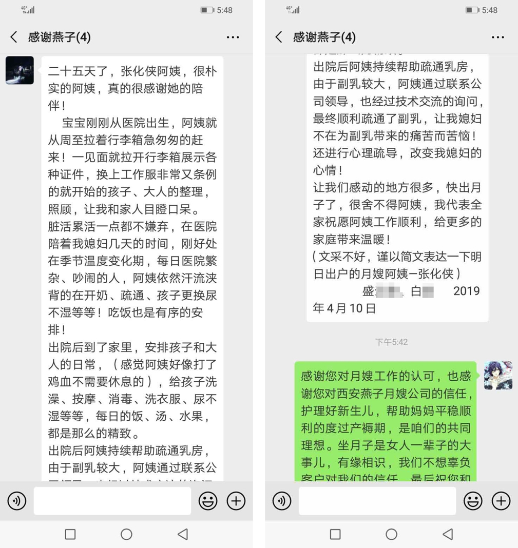 感謝金牌月嫂張化俠如家人般悉心照料