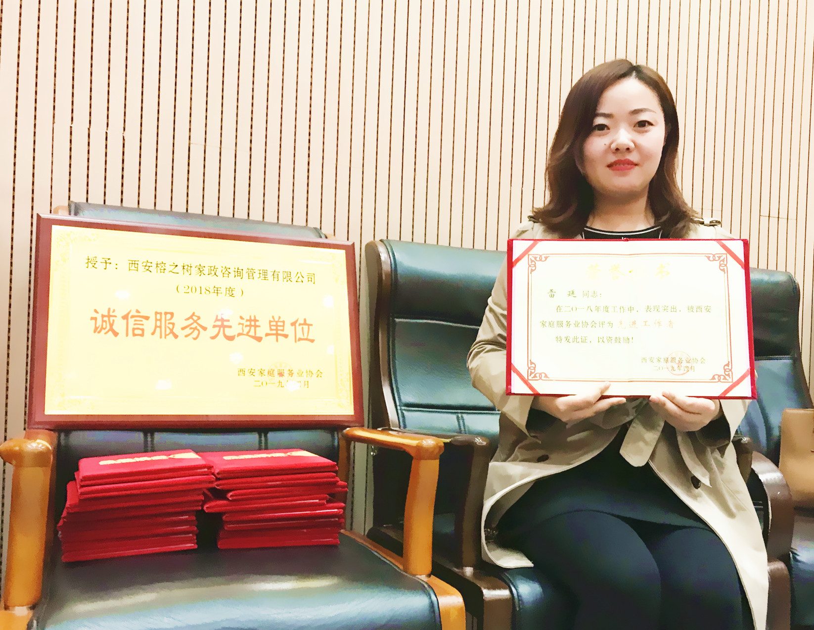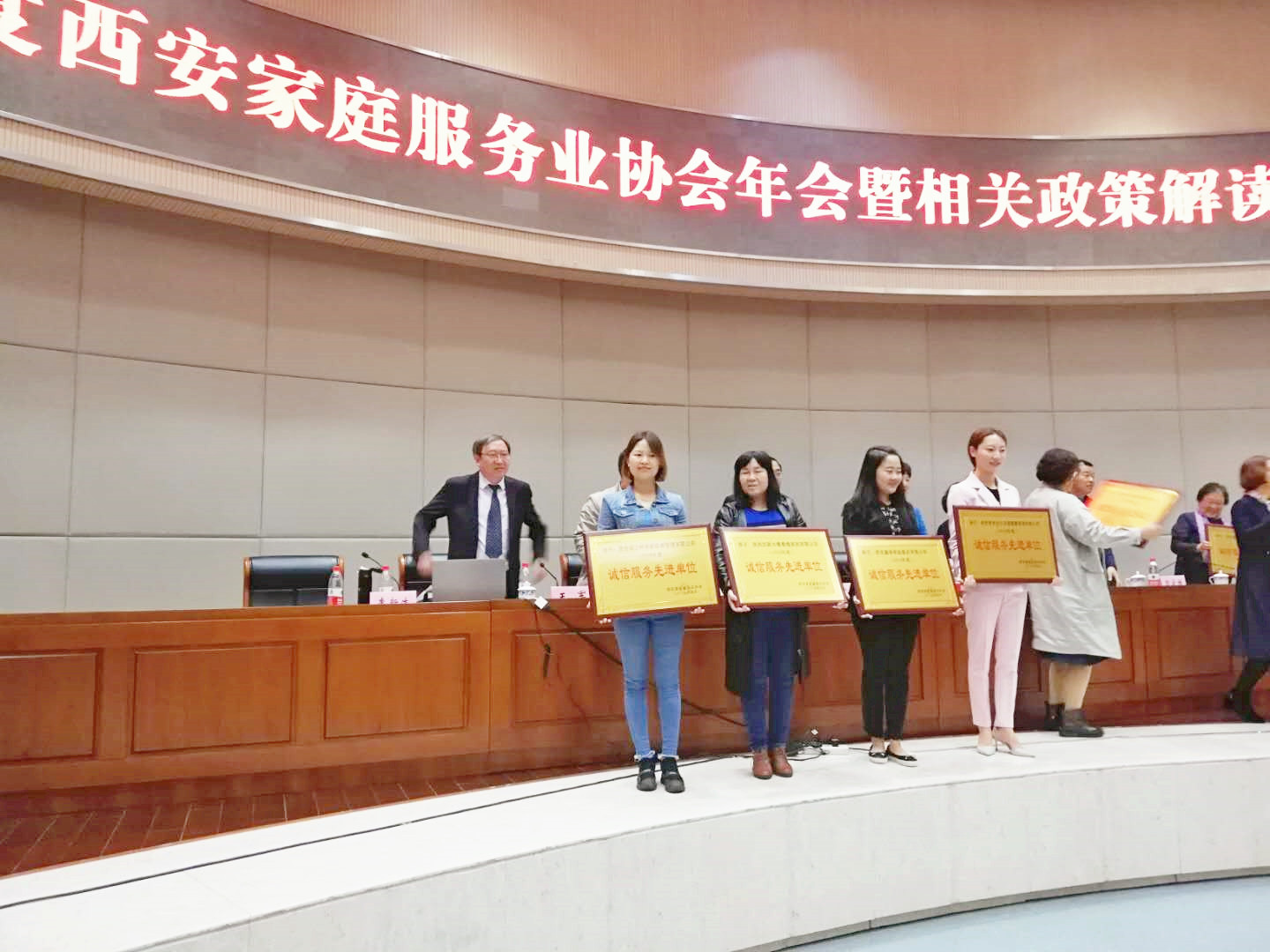 2018年度西安家庭服務業協會年會暨相關政策解讀會,于2019年4月12日在市政府會議廳隆重召開。作為理事單位的西安榕之樹家政咨詢管理有限公司再次獲得誠信服務先進單位稱號,并有2名優秀的經理人王曉燕和雷延被評為年度先進工作者,郭線線、費娟琴等30名月嫂育兒嫂獲得年度優秀家政員的稱號,本年度燕子月嫂獲獎員工人數相比去年增長一倍,占全市優秀家政員獲獎人數的30%左右。