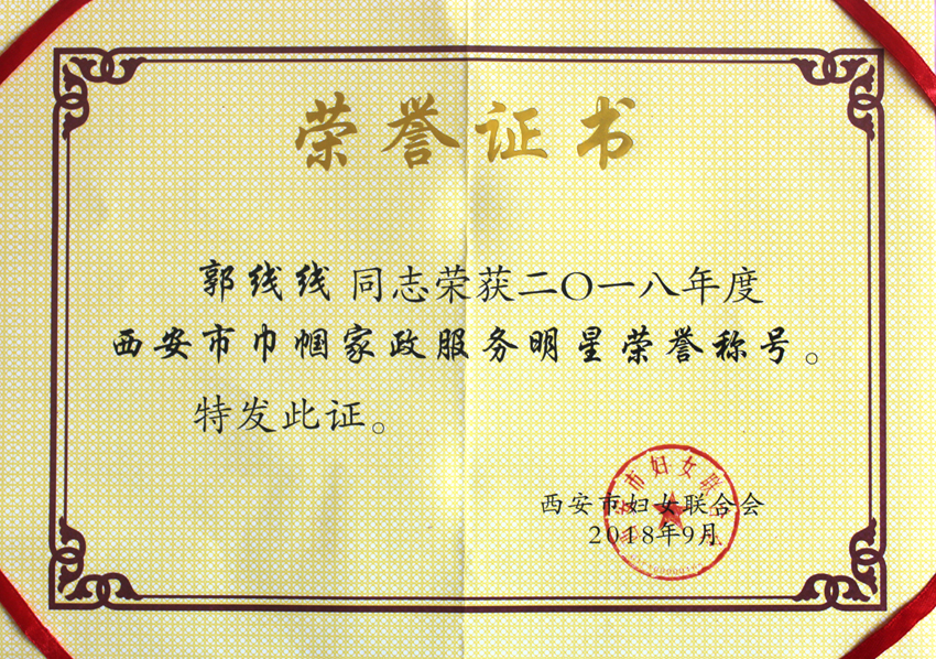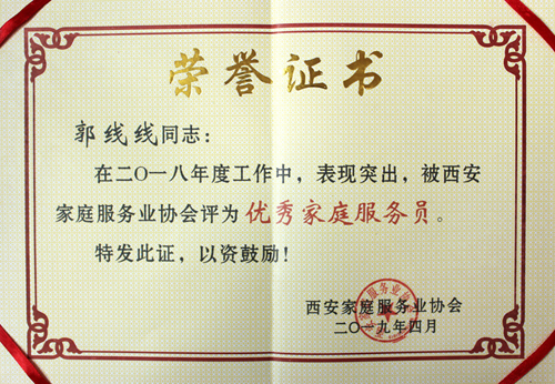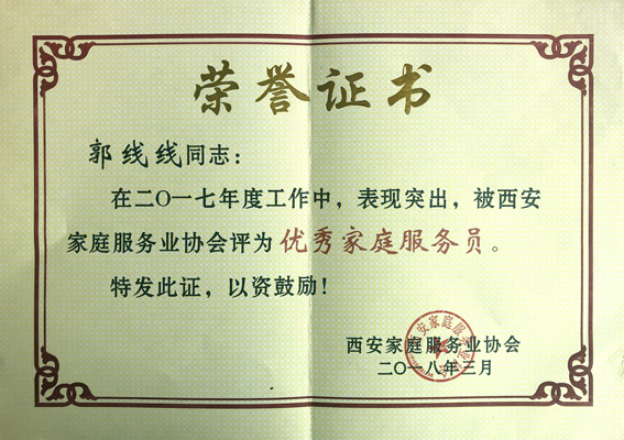 郭線線老師從事母嬰護理工作8年多,服務客戶近70戶,足跡遍及北京、上海、深圳、江蘇、甘肅、內蒙等。2017年走出國門,在澳大利亞、越南服務VIP客戶四個多月。從業以來飽受客戶的贊譽,以精湛的服務技能連續七年位列燕子月嫂首席月嫂。曾多次獲得西安市家庭服務業協會授予的優秀家政服務員稱號。今年又榮獲西安市巾幗家政服務明星。