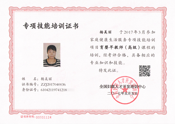 性格溫和,做事情干凈利索,能在最短的時間內把事情做完,喜歡小寶寶,上進心強,不斷努力提升自己,希望做一名優秀的育兒嫂。