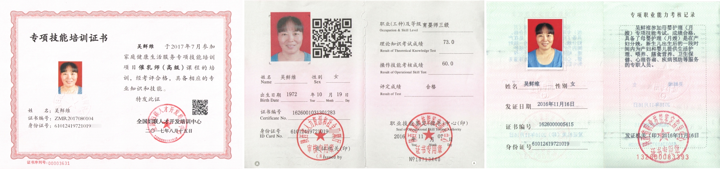 1994年至1996年在周至縣中醫院上班,是中醫士;1996年至2010年在陜西省黃河制藥廠做質檢員;2011年經過朋友推薦來到燕子月嫂公司,后參加月嫂培訓,至今一直從事月嫂行業。自入職以來以服務60余戶,服務專業技能精湛,是燕子月嫂的優秀員工之一。