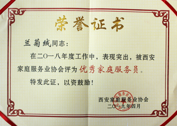 恭喜蘭菊絨榮獲“優秀家庭服務員”稱號