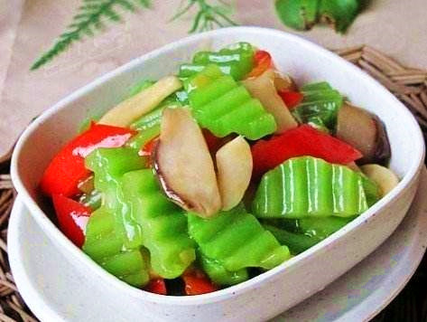 食材:青筍、杏鮑菇、彩椒、花生油、蠔油、淀粉、芝麻油
