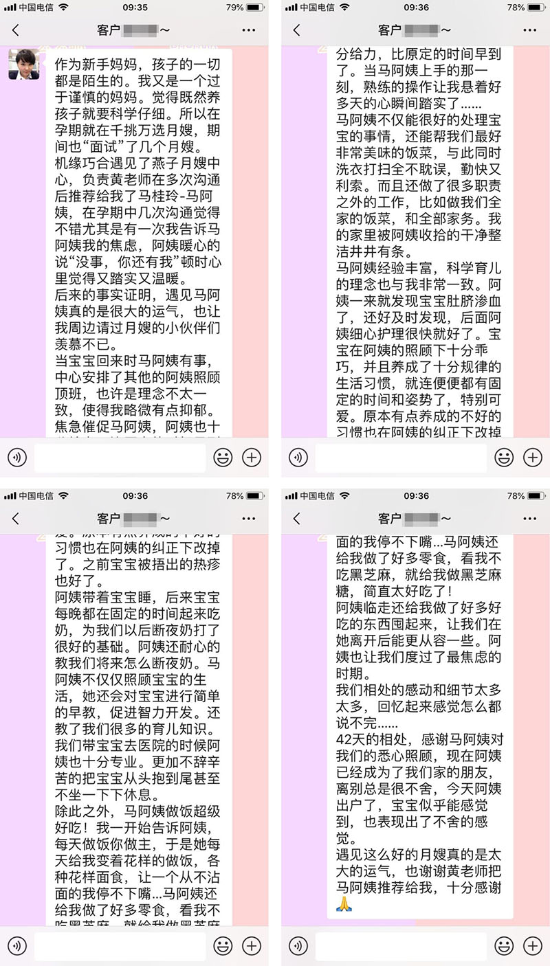 遇見這么好的月嫂真的是太大的運氣,也謝謝黃老師把馬阿姨推薦給我,十分感謝!