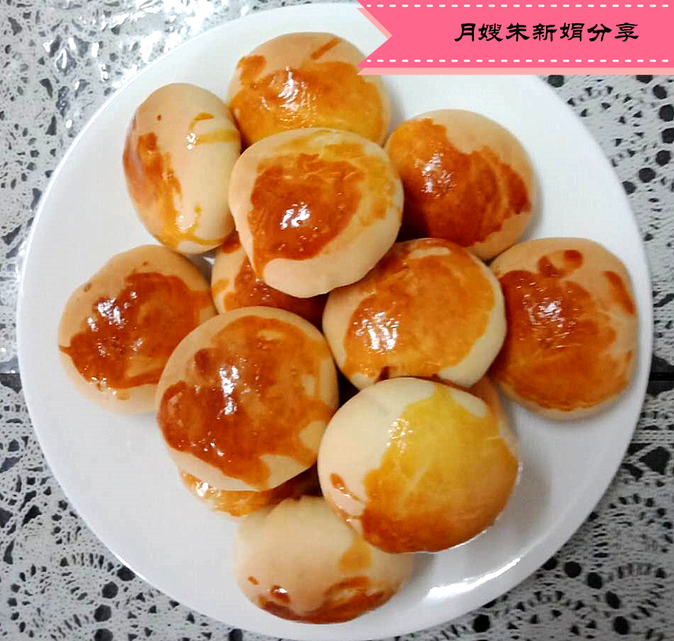 3、面皮包入餡料,醒至十分鐘。蛋黃液刷在餅皮上。