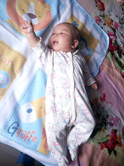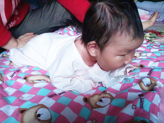 3、不需要枕頭,用毛巾折兩折枕,三個月后給可以用枕頭,枕高3到4厘米。