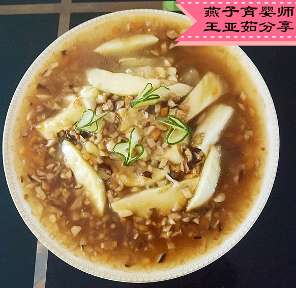 3、澆在蒸好的茄條上,擺盤點綴即可。