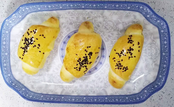 私人定制育嬰師黃文秀給大家分享一下蕉香牛角包制作方法: