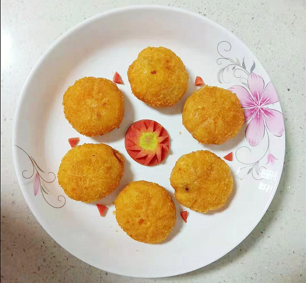 1 、南瓜去皮切片上蒸鍋,蒸熟搗成泥。