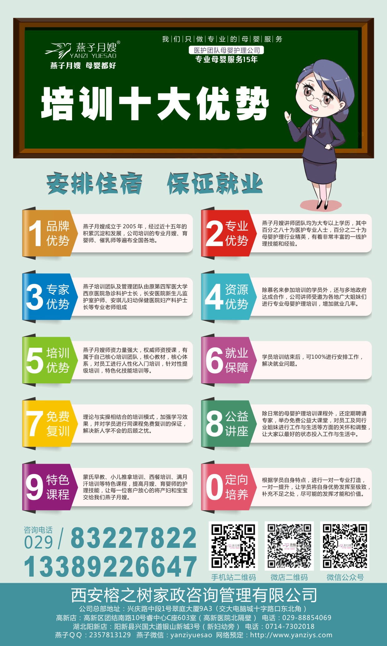燕子月嫂服務的是產褥期的產婦和剛剛出生的寶寶,所以培訓是把好安全關的第一步,我們高度重視培訓質量和培訓效果,燕子月嫂是西北首家月嫂公司,服務至今已有客戶7000余家,每月需要新員工20余名滿足月嫂客戶的需求,這更加給培訓班的學員提供了更大的服務平臺。