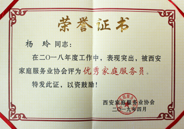 楊玲榮獲家協(xié)“優(yōu)秀家庭服務(wù)員”稱號