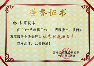 楊小芹榮獲家協“優秀家庭服務員”稱號