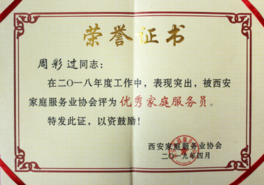 周彩過榮獲家協“優秀家庭服務員”稱號