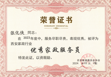 西安燕子月嫂張化俠評(píng)為西安家政行業(yè)“優(yōu)秀家政服務(wù)員”?