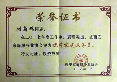 劉菊鴿榮獲家協(xié)“優(yōu)秀家庭服務(wù)員”稱號