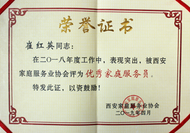 崔紅英榮獲家協(xié)“優(yōu)秀家庭服務(wù)員”稱(chēng)號(hào)