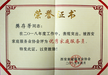 樊存芳榮獲家協“優秀家庭服務員”稱號
