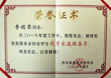 費娟琴榮獲家協“優秀家庭服務員”稱號