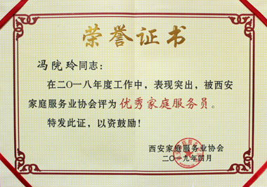 馮院玲榮獲家協“優秀家庭服務員”稱號