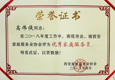 高偉俠榮獲家協(xié)“優(yōu)秀家庭服務(wù)員”稱號(hào)