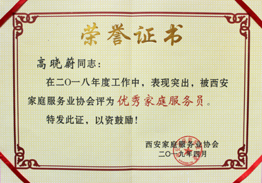 高曉蔚榮獲家協“優秀家庭服務員”稱號