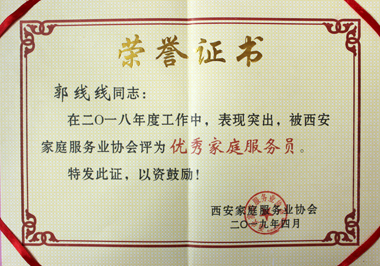 郭線線榮獲家協“優秀家庭服務員”稱號